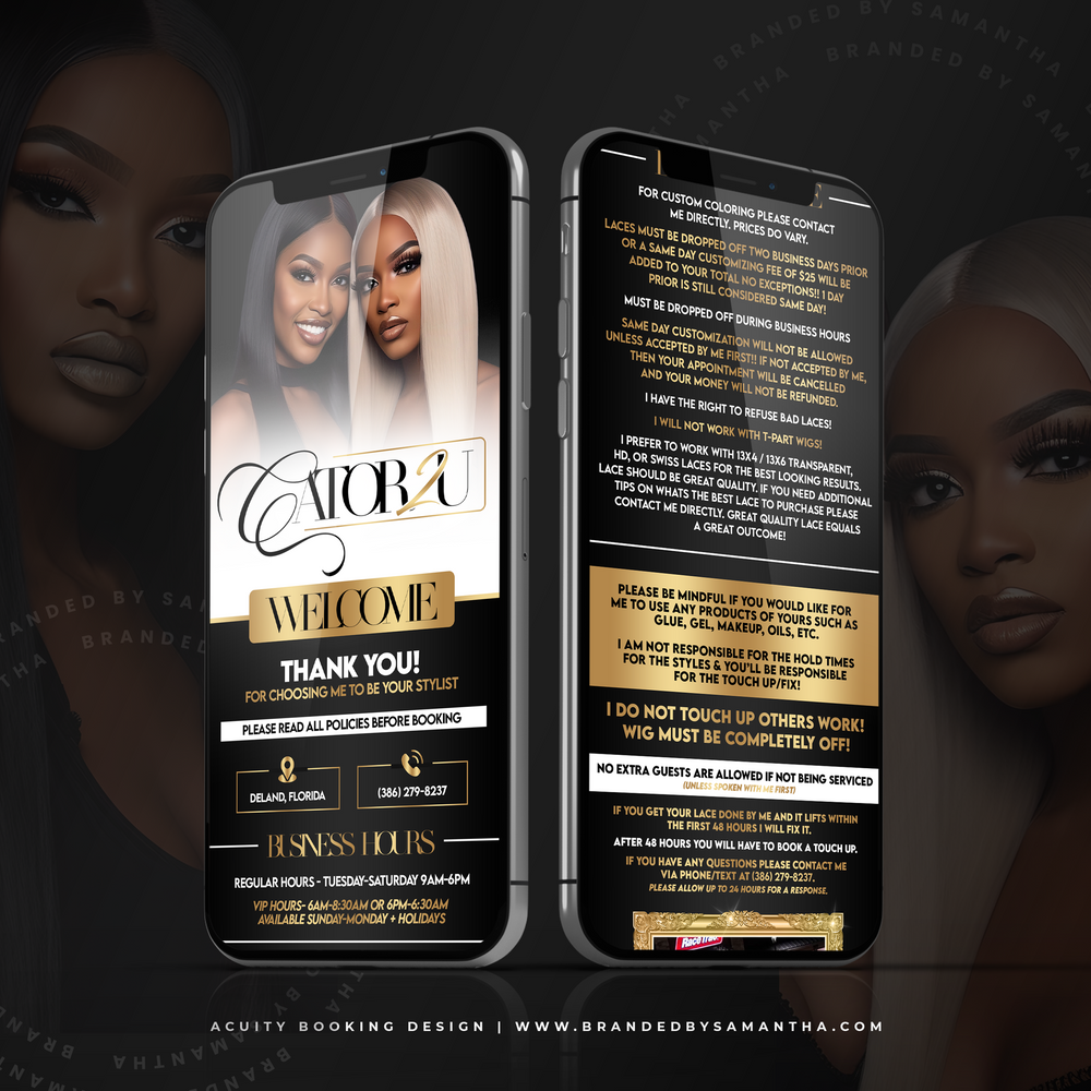 You will receive 1 fully customized Acuity booking site design. You will have the option of having up to 3 complimentary edits/changes. Any edits/changes must be done before approving/finalizing your design. Once you approve, finalized designs cannot be edited. I can either send step by step instructions on how to place your design or I can do it for you at no additional cost.